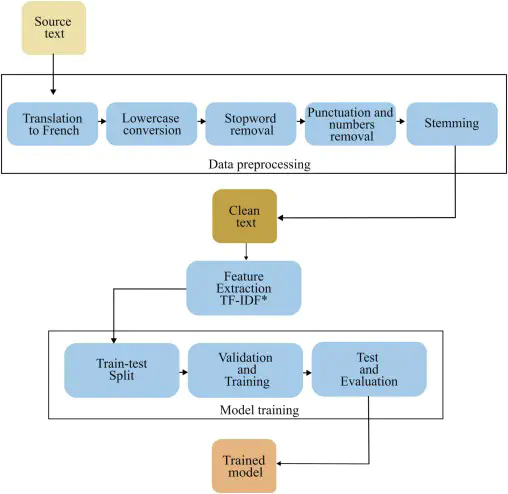 Every other year, Canadian veterinarian provides personalized recommendations to improve dairy farm biosecurity, resulting in a large volume of text data. This study aimed to develop a machine learning model capable of automatically classifying these biosecurity recommendations into 12 predefined categories. The model was trained on 11,250 manually classified veterinary recommendations collected between 2018 and 2021. Three algorithms were tested: Multinomial Naïve Bayes (MNB), Support Vector Machine (SVM), and Random Forest (RF). The trained SVM model was selected to classify new recommendations collected between 2022 and 2024 from herds in Alberta, Ontario, and Québec. To evaluate model’s performance on this new dataset, a random sample of 250 recommendations was manually classified. The agreement between human classification and model predictions resulted in a Cohen’s Kappa of 0.88, suggesting strong agreement. This study highlights the potential of machine learning to classify biosecurity recommendations and support timely, informed decision-making in dairy herd management.